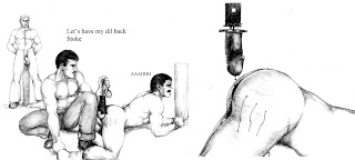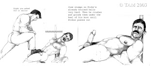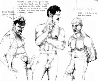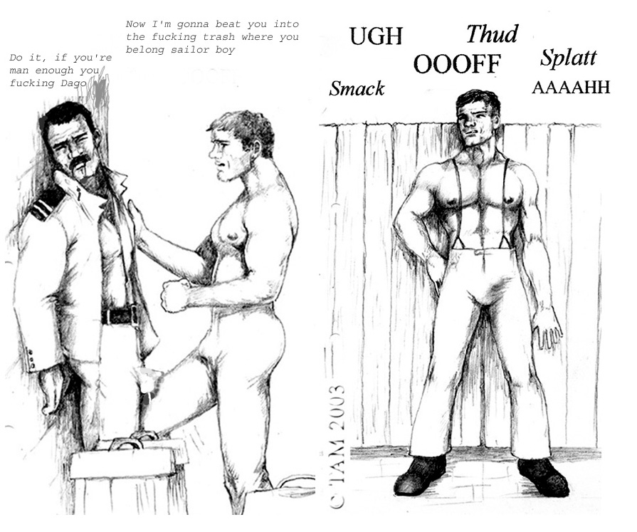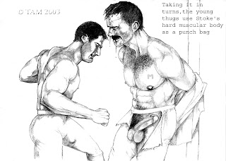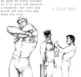 This story in the style of a kids' coloring book was done more years ago than I care to remember. Unfortunately some panels are missing but I think you can get the story. Two thugs work over a copper but Spud is getting very heavy. Ginger tries to stop him and gets a beating for his trouble. Spud dumps the cop in a trash can and