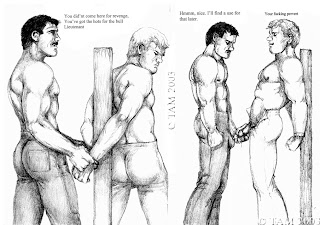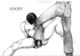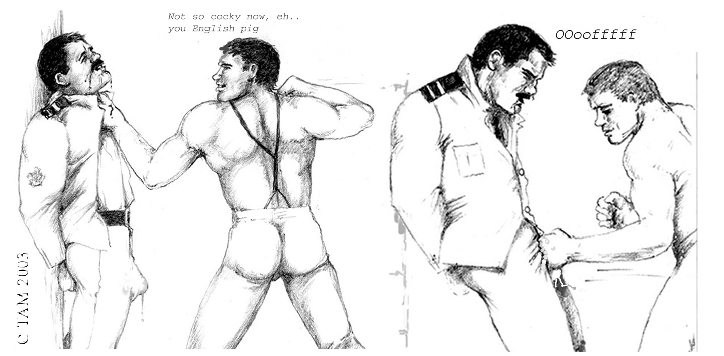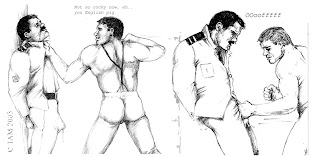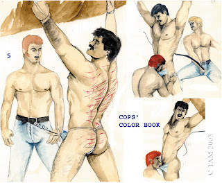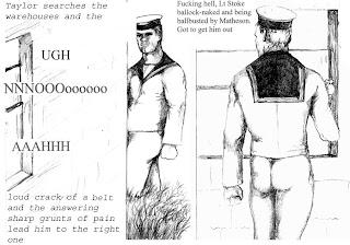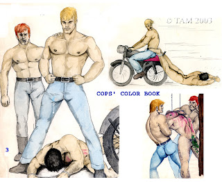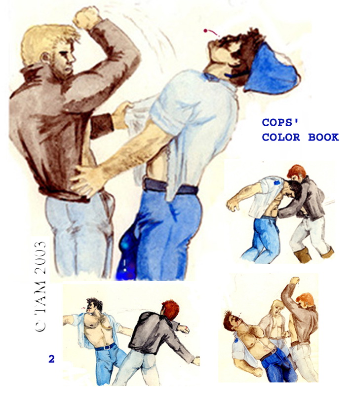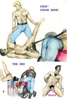 This story in the style of a kids' coloring book was done more years ago than I care to remember. Unfortunately some panels are missing but I think you can get the story. Two thugs work over a copper but Spud is getting very heavy. Ginger tries to stop him and gets a beating for his trouble. Spud dumps the cop in a trash can and